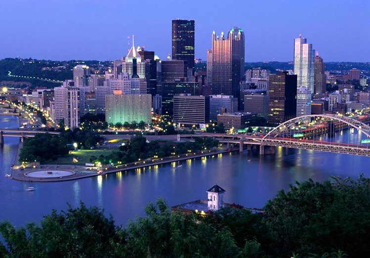 匹茲堡位于美國東海岸的賓夕法尼亞州,坐落在阿勒格尼河、莫農(nóng)加希拉河與俄亥俄河的交匯處。開車往東與紐約距離6小時,往東南到首都華盛頓特區(qū)3小時,往東到費城5小時,往西到克利夫蘭1小時,往北到伊利湖2小時,往東北到尼亞加拉大瀑布5小時,可以說是美國東海岸連接中西部的重要地點。