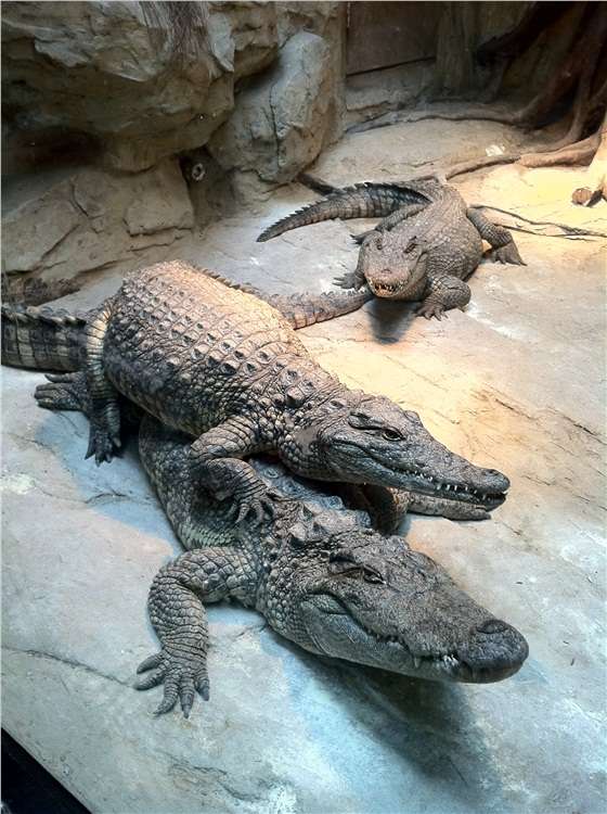 鱷魚是現(xiàn)存的最大的爬行動物,它與恐龍是同時代的,不過恐龍已成為過去,鱷魚能夠存活下來也證明了它頑強的生命力。鱷魚喜歡溫暖,喜歡在陽光下漂浮在水面一動不動,它獨有的偽裝術(shù)往往讓游客迷糊了雙眼。當飼養(yǎng)員將它們喜歡的魚用竹竿勾住伸向它們時,鱷魚們就卸下偽裝表現(xiàn)出該有的活力,讓游客們大飽眼福。
