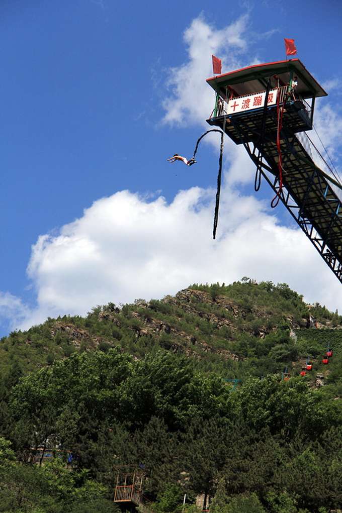北京拒馬娛樂(lè)有限公司開(kāi)時(shí)尚風(fēng)氣之先,第一個(gè)將勇敢者的游戲——蹦極跳引入中國(guó),落戶(hù)十渡,引發(fā)了全國(guó)范圍內(nèi)的蹦極熱,被譽(yù)為“十渡蹦極,神州第一”,尤其是一處雙臺(tái)蹦極,更是世界第一。。版權(quán)所有山東聊城聊之旅國(guó)際旅行社有限公司,轉(zhuǎn)載必究!迄今為止公司已安全接待勇敢者10萬(wàn)余人次,并于2000年7月12日-14日成功的舉辦了由國(guó)家體育總局、登山運(yùn)動(dòng)管理中心主辦,北京拒馬娛樂(lè)有限公司承辦的首屆全國(guó)高臺(tái)蹦極邀請(qǐng)賽,這是迄今為止世界上規(guī)模最大、參賽人數(shù)最多、參賽范圍最廣、比賽層次最高的一次蹦極賽事。