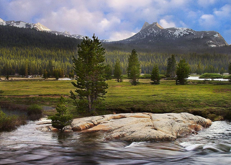約塞米蒂國家公園的溪流是世界上最著名、最有趣的溪流,它們吸引著一批又一批慕名而來的旅游者,穿行在妙趣橫生的峽谷中,年復(fù)一年,樂此不疲。較大的溪水與河流以其桀驁不馴的能量在峽谷間展現(xiàn)著它們的清澈與秀美。在泡沫飛濺的寬闊的平地上,水流以平緩的斜度呈梯極傾瀉而下,隨處泛起美麗的旋渦,四濺的水霧在陽光中幻出彩虹;在沖過崎嶇的峽谷與擋在河道上的巨石時(shí),水石相擊的轟鳴久久回蕩。在瀑布上,水勢(shì)洶涌、奔放豪邁,而在穿過綠蔭掩映的長長的森林流域時(shí),水流卻變得平緩舒暢,水光如銀、水聲如訴,使大峽谷中充滿了美妙的歌聲,使萬物充滿了生機(jī)。