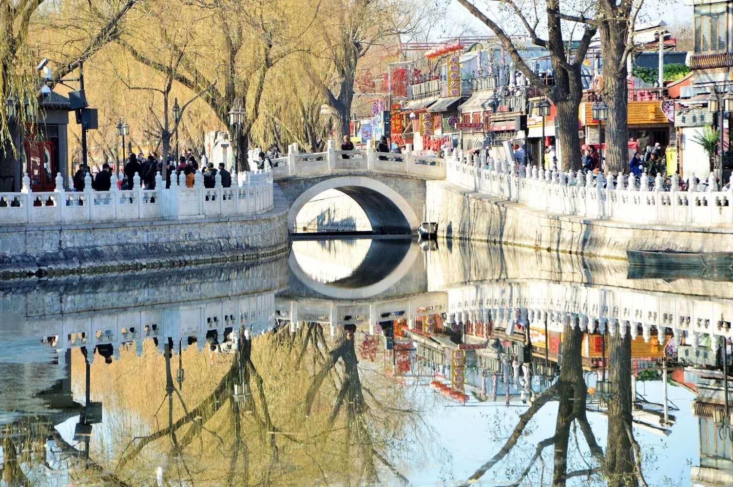 在銀錠橋上,舊京風(fēng)景一覽無余。東望小橋流水人家,西望則遠(yuǎn)山疊翠,天邊煙波浩淼,視野深闊,又是一番情趣,著名的“銀錠觀山”和“海水倒流”就在這兒;再看橋的南部,是著名的大小金絲套古老胡同,橋的北面走上數(shù)十步,就到了古香古色的煙袋斜街。四面環(huán)視,古樸之情與觀山景色和諧地融為一體。