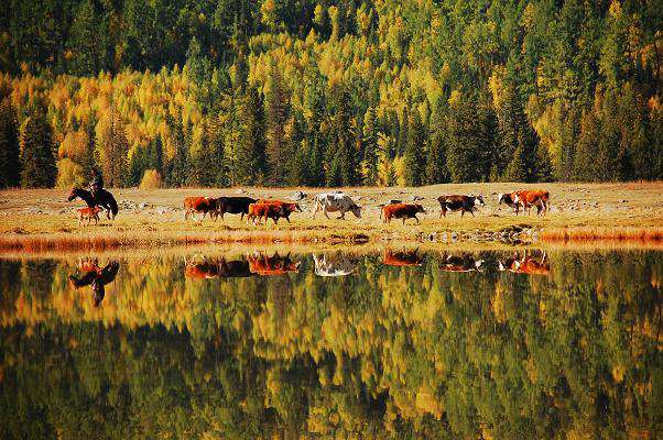 鴨澤湖距喀納斯圖瓦村1公里,西臨喀納斯河,四周環(huán)繞著茂密的森林。有柏油和砂石公路相通。海拔1350米,湖體呈長形蝶狀,沿洼地南端形成一個南北走向的寬淺湖泊,湖面面積約1.3萬平方米,長3公里,寬600—800米,湖周開闊平緩,湖泊似鏡,夏天有成群野鴨、大雁在湖區(qū)棲息游弋,繁衍生息。