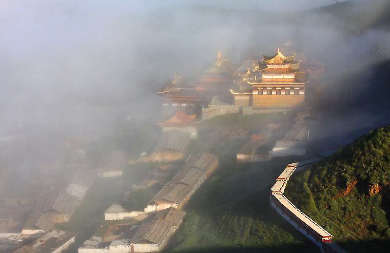 登上索克藏寺背后播箭的山頂,運(yùn)眺索克藏寺『索格藏寺藏語為“扎西特欽倫”,意為吉祥大乘洲,位于九曲黃河第一灣處。始建于1658年,面積7.6萬平方米,僧侶200余人。版權(quán)所有山東聊城聊之旅國際旅行社有限公司,轉(zhuǎn)載必究!寺院建筑、宏偉壯觀,各殿陳列有金、銀、木、泥質(zhì)的佛像、神像千余尊』。和九曲黃河第一彎,黃河仿佛從天邊曲曲繞繞一路走來,沒有氣勢(shì)磅礴,沒有濁浪滔天,聽不到驚濤拍岸的濤聲,也看不到高出地表的堤岸,始終情意綿綿地彎曲迂回于唐克金銀灘,猶如一道道流暢的飄帶。