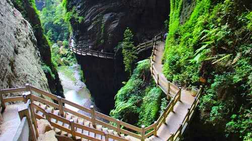 地質(zhì)奇觀——武隆地縫。武隆地縫風(fēng)景區(qū),位于武隆區(qū)仙女山鎮(zhèn)境內(nèi),距縣城15公里。它是幾千萬年前造山運動而形成,屬典型的喀斯特地貌景觀,峽谷長5公里,谷深200-500米,其規(guī)模宏大,氣勢磅礴,峽谷具有雄、險、峻、秀等特點。景區(qū)內(nèi)的高山、峻嶺、峽谷、流水共同構(gòu)成一幅完美的