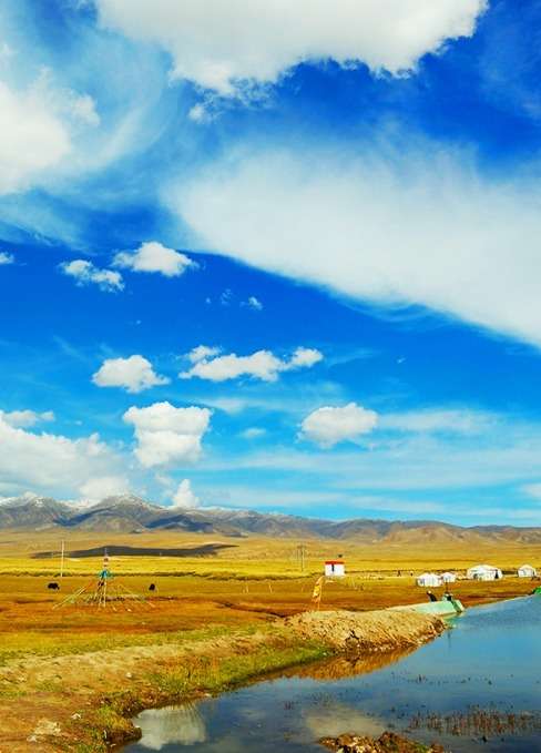倒淌河位于青海省海南藏族自治州,海拔約3300米,全長約40多公里,流向?yàn)樽詵|向西,流入青海湖,區(qū)別于大多數(shù)自西向東的河流,故名倒淌河。