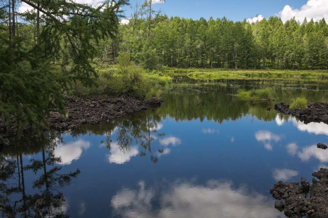 山玄武巖地貌,地質(zhì)構(gòu)造、土壤、植被、生物區(qū),均保持原始狀態(tài),生物多樣,再現(xiàn)了低等植物到高等植物的演替全過程,具有較高的科研和保護(hù)價(jià)值。石塘林長(zhǎng)20公里、寬10公里,是由火山噴發(fā)后巖漿流淌凝成。裸露的火山石。形成了大小不等、凹凸不平的地貌,怪石嶙峋,姿態(tài)各異。塘內(nèi)寸土無(wú)積,但落葉松長(zhǎng)得高大挺拔,高山柏長(zhǎng)達(dá)數(shù)丈;偃松(爬地松)翠綠欲滴;金星梅、銀星梅長(zhǎng)開不謝。石塘林內(nèi),石林相依,花草相融,清流時(shí)隱時(shí)現(xiàn),令人嘆為觀止。經(jīng)過千年風(fēng)化和流水沖刷,形成了石塘林獨(dú)具特色的自然地貌,猶如波濤洶涌的熔巖海洋,有翻花石、熔巖洞、熔巖丘、噴氣錐、熔巖龜背、地下暗河等神奇的景觀。興安落葉松枝繁葉茂,高山柏遍地延伸,偃松四季常青,金星梅、銀星梅一片金黃,一片銀白,處處景色盎然。