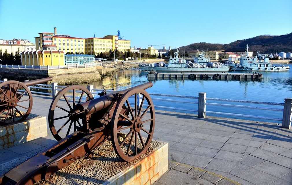 旅順軍港地處遼東半島西南端,黃海北岸。港口口門開向東南,東側(cè)是雄偉的黃金山,西側(cè)是老虎尾半島,西南是巍峨的老鐵山,周圍環(huán)守旅順港形勢險要,天然形勝被譽為“天下奇觀。我們所指的“旅順口”“獅子口”就是寬近300米由兩山對峙而成的出海口。過300米中只有一條91米的航道,每次只