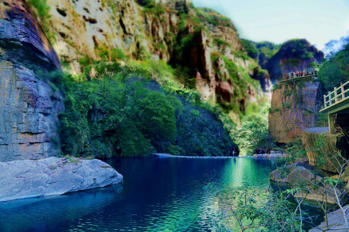 見龍瀑又名潭頭瀑,因其上游的潭頭古村落而得名。見龍瀑布每年限時(shí)開放,猶如見龍?jiān)谔铮ㄖ辉诿磕甏杭境霈F(xiàn))故名見龍瀑。見龍瀑?gòu)暮0?80米的斷崖上跌落到海拔260米的溝底中,落差達(dá)320米,瀑布最大流量可達(dá)3000立方米/每秒,似云龍飛騰,聲威勢(shì)大,氣貫如虹,號(hào)稱‘中原第一瀑’,展示出一幅‘山因水而靈秀,水因山而雄厚’的生動(dòng)畫卷。