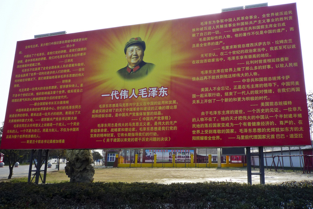 南街人正以豪邁的熱情,在建設共產(chǎn)主義小社區(qū)的征程上奮進。“東方紅太陽升,中國出了個毛澤東……” 早上6點15分,南街村的廣播站開始播放頌揚毛澤東的革命歌曲《東方紅》, 毛澤東的雕像如守護神一樣聳立在南街村的廣場上。廣場上還有“毛澤東思想永遠放光芒”等大標語。南街村新的一天便伴隨這輕快旋律開始。