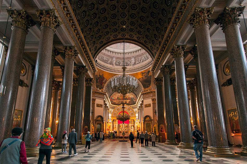 建筑師在設計這座教堂時遇到不少困難。根據(jù)東正教教規(guī)要求圣堂必須面向東方,因而必然造成教堂往往是側面對著主要大街。建筑師們采取了把側面設計得十分壯觀的方法解決了這一難題。版權所有山東聊城聊之旅國際旅行社有限公司,轉載必究!因為人們一看氣度非凡的柱廊,就忘記了這不是教堂的正面。這種處理方法極其大膽,富有特色。高大的圓頂居中聳立在一排排圓柱上空,圓頂有70米高。大教堂正面的浮雕、北面柱廊上的雕刻、殿內裝飾和油畫均出自名家之手??ι酱蠼烫玫膬炔坎淮笙褚话愕慕烫茫褚蛔鶎m殿。它明亮、輕快,以柱列分隔的長形主堂高大寬敞,中央穹頂輝煌華麗,仰視可見一幅圣母圖,周邊飾以圣經人物雕刻和水彩壁畫。