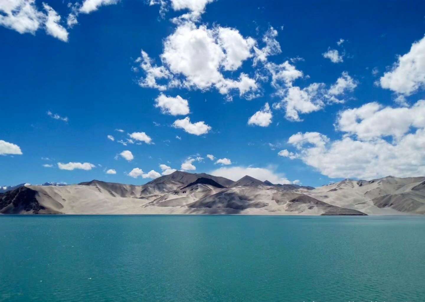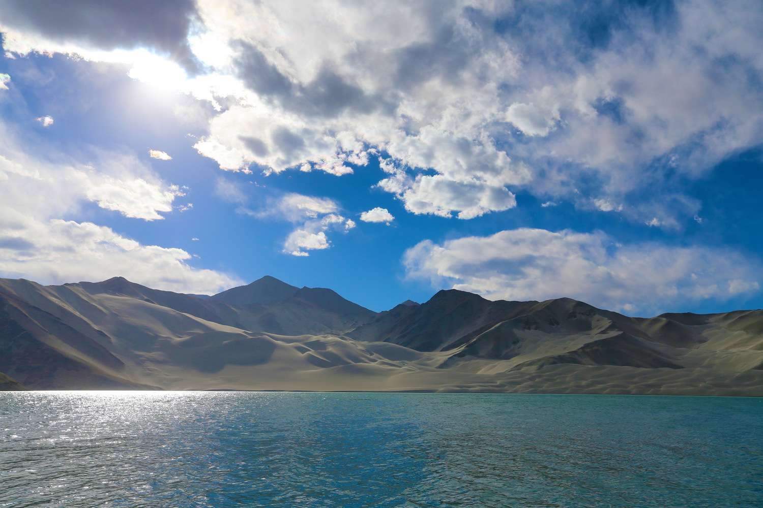 “卡拉庫(kù)里”意為“黑?!保0?600米,湖深30米,總面積10平方公里,是一座高山冰蝕冰磧湖。水面映襯著巍峨又神秘的慕士塔格峰,白雪皚皚,山水同色,景色十分迷人。