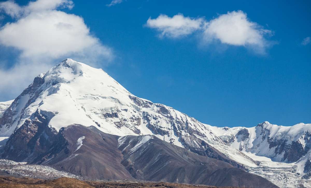 公格爾峰位于新疆克孜勒蘇柯?tīng)柨俗巫灾沃莅⒖颂湛h,為昆侖山的高峰之一,海拔7649米。