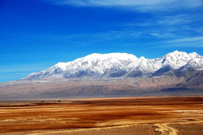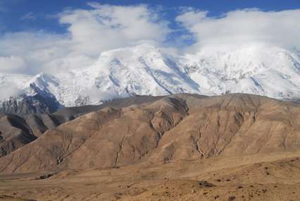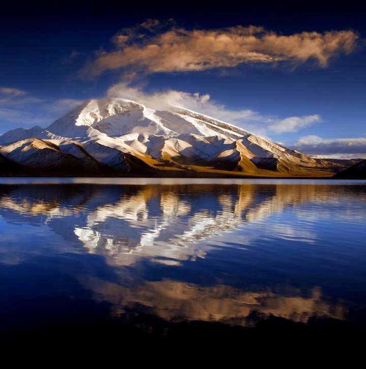 公格爾峰位于新疆克孜勒蘇柯?tīng)柨俗巫灾沃?/span>阿克陶縣,為昆侖山的高峰之一,海拔7649米。山頂常年積雪,山間懸掛著條條銀光閃閃的冰川,極為壯觀。