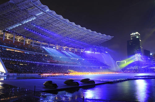 海心沙島是珠江新城核心區(qū)軸線的端點,作為珠江僅有的幾個小島之一,海心沙一直被定位為生態(tài)和休閑之島。另外,海心沙島也是廣州城的一個交點:東西向是珠江這條見證廣州兩千多年古城風(fēng)雨的歷史軸線,南北向是廣州面向未來發(fā)展的南北向新城市中軸線。向北延伸,是西塔、省博物館等廣州新標志性建筑、一直向北是2010年亞運會的主會場天河體育中心,猶如一個高腳的獎杯形狀。小島四面環(huán)水,沒有圍墻,此外,海心沙所處的珠江兩岸高樓眾多,除了一些高級寫字樓外,還有不少臨江豪宅。 島上會場容量:30米高的大看臺能容納的觀眾人數(shù)在2.4萬人左右,但后期在南北兩岸增加看臺,三處看臺的觀眾容納量在3.5萬人左右。廣州海心沙規(guī)劃建成高端品牌展示、娛樂、會所商業(yè)區(qū)。