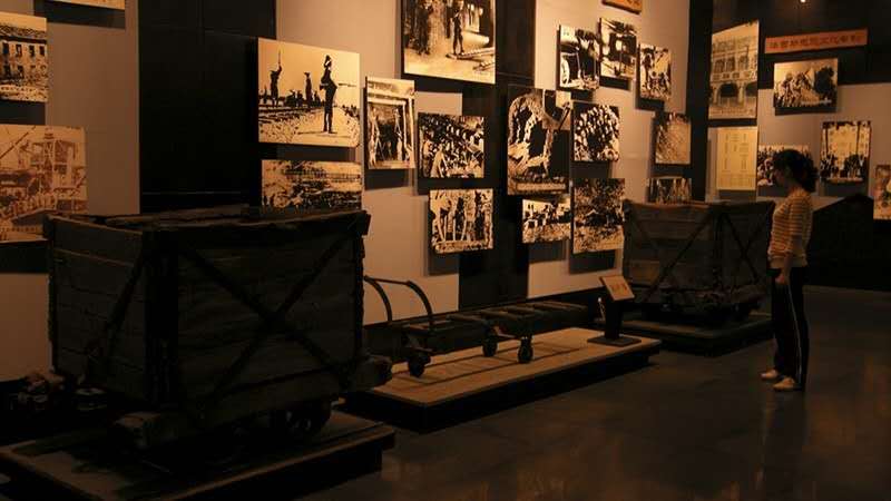 運尸車:該運尸車長約200厘米,高約120厘米,鐵制,有3只車輪。這種運尸車,是日本侵略者用來運送被他們殘酷的盤剝壓榨,苦力折磨和殘暴的肉體刑罰而悲慘死去的無數(shù)中國人尸體的工具。 |