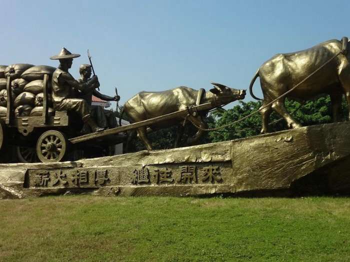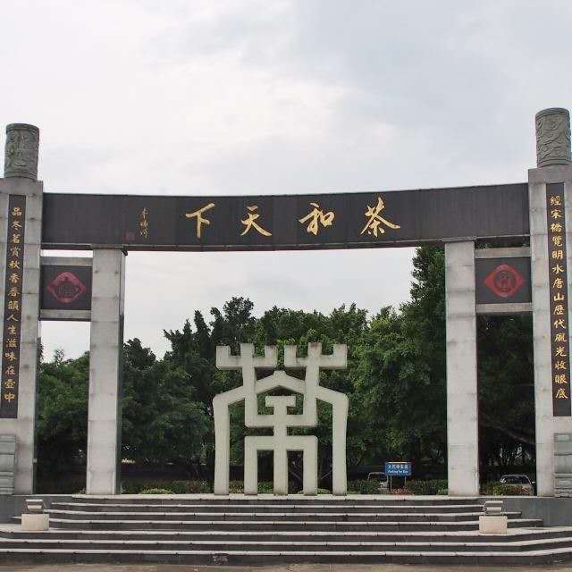 因而頗有意思。在牌樓兩旁寫著“清和”、“精儉”、背后是“誠(chéng)敬”、“美倫”這八個(gè)大字是代表著茶道精神,也是茶博物院的景區(qū)質(zhì)量口號(hào)。在牌樓的左側(cè),有一座5米高、15米長(zhǎng)的照壁,正面浮雕刻有五位對(duì)中國(guó)茶文化做出重大貢獻(xiàn)的人物:神農(nóng)、陸羽、蘇軾、蔡襄、乾隆。