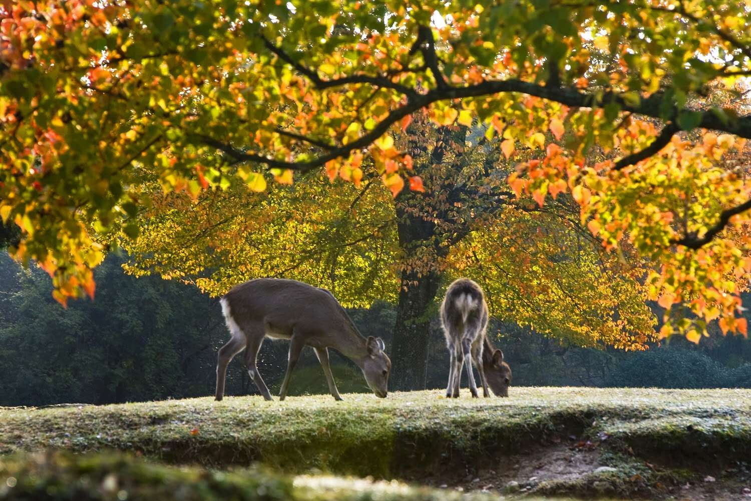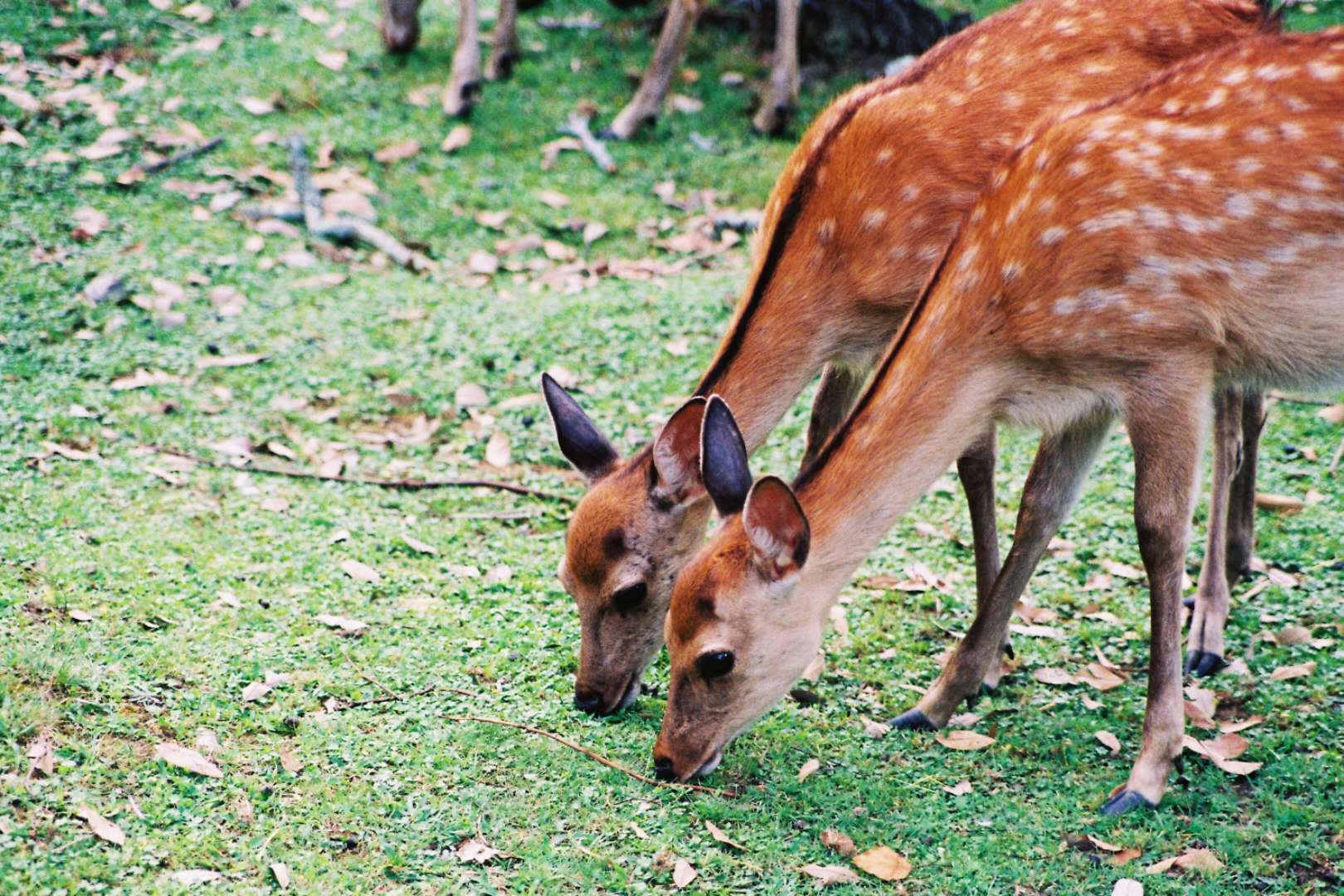 鋸鹿角,日語(yǔ)寫(xiě)作“鹿の角きり”。為了保護(hù)游客的安全,并防止奈良公園中的樹(shù)木遭受損壞,每年10月份前半個(gè)月的星期日,奈良公園都要舉行一個(gè)“鋸鹿角”的傳統(tǒng)活動(dòng)?!颁徛菇恰钡倪^(guò)程是:稱(chēng)為“勢(shì)子”的人將鹿抓住,灌入神酒讓它安定下來(lái),然后由神官將鹿角鋸斷。