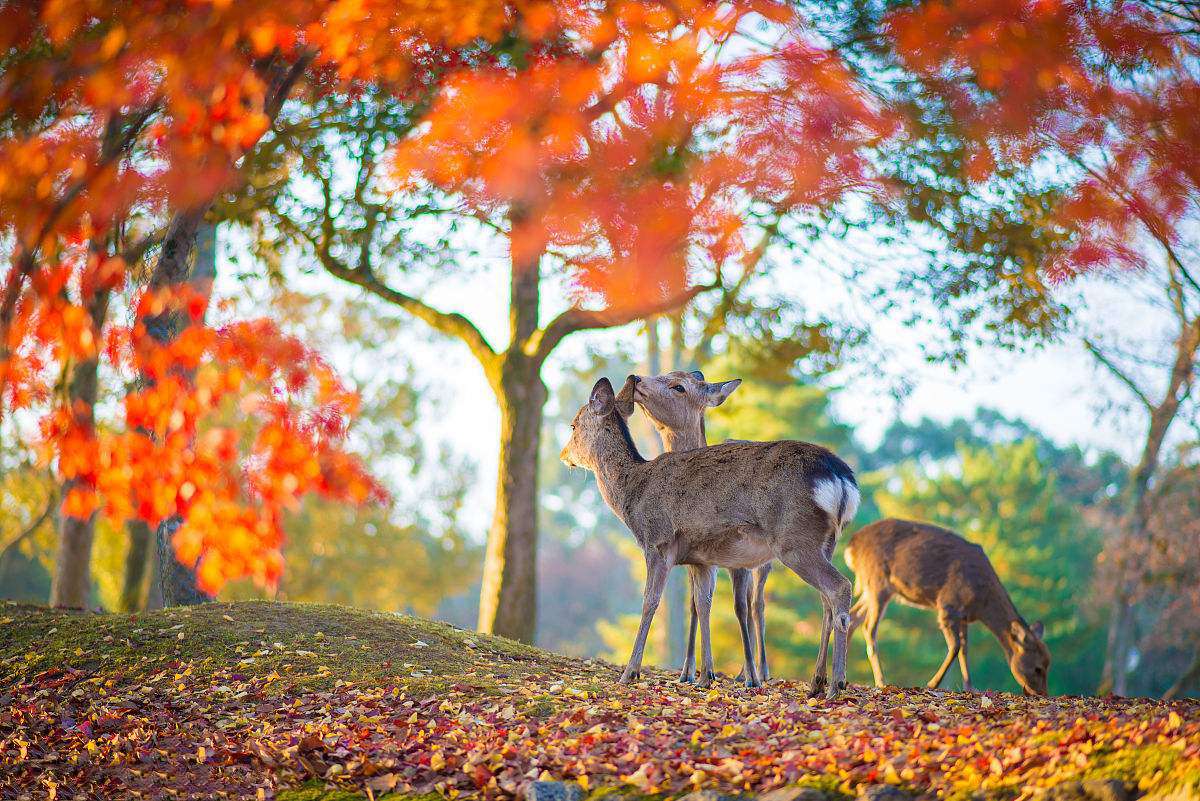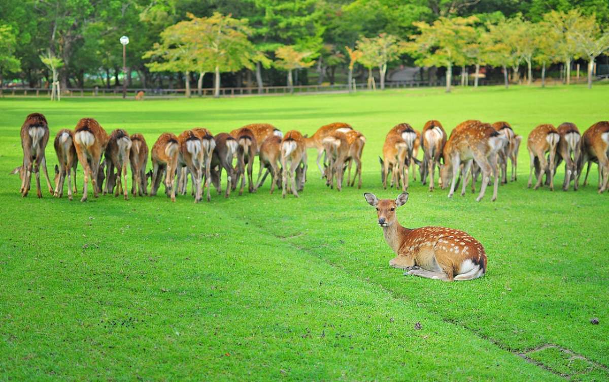 若草山:海撥342米,面積33萬(wàn)平米。看似三山相疊的一個(gè)草坪山。登臨山頂,整個(gè)奈良盆地盡眼底。每年僅3月21日至6月15日,9月10日至11月25日,方可入山。