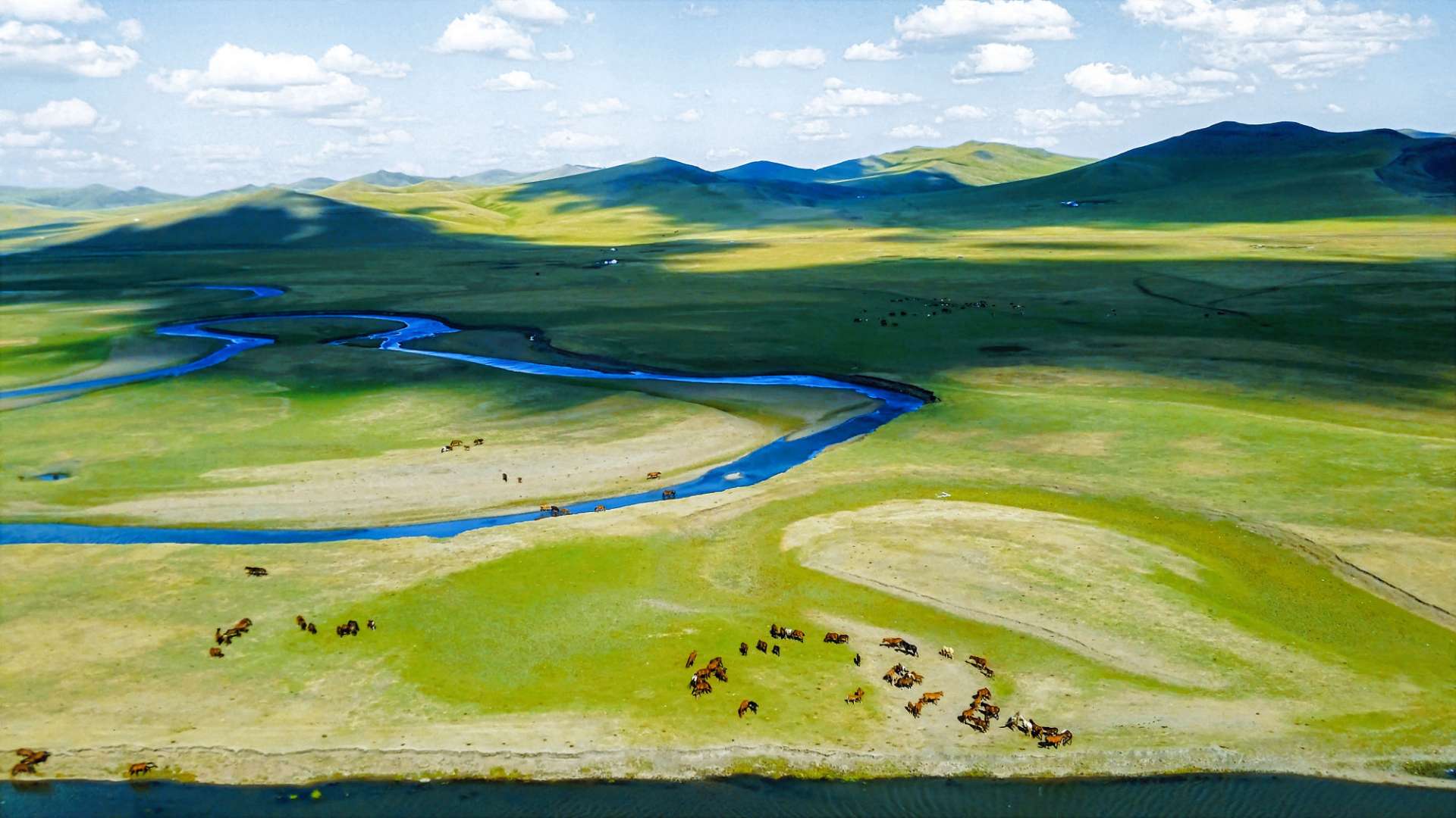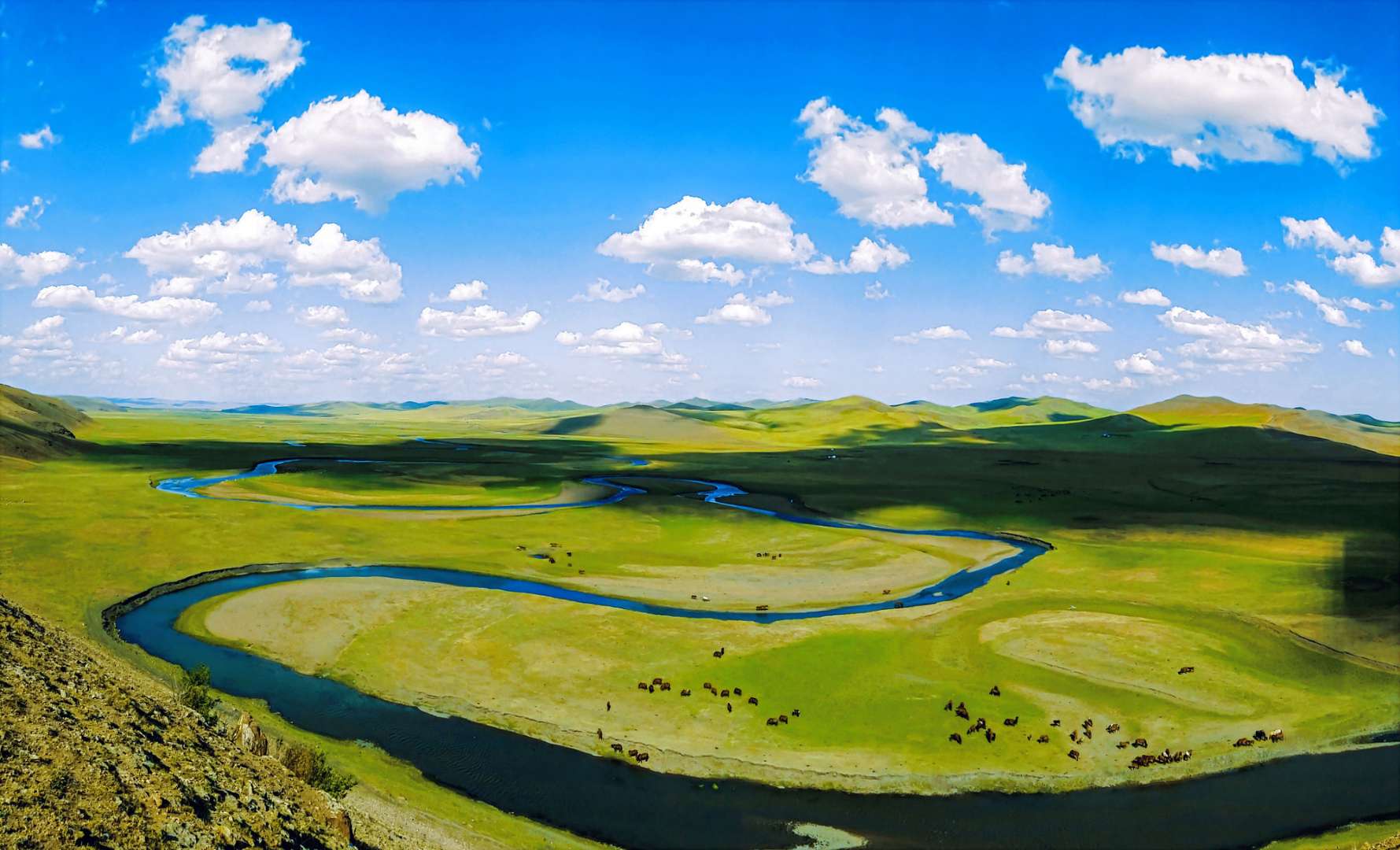 藍(lán)天白云下,鑲嵌在一望無際的綠色草原上的莫日格勒河,顯得是那樣嬌柔嫵媚,在這種純自然的優(yōu)美環(huán)境中,騎上駿馬,駱駝,或是坐在勒勒車上,沿著彎彎曲曲的莫日格勒河溜上一圈,再走進(jìn)蒙古包里喝上幾碗用莫日格勒河水和鮮奶煮就的奶茶,嘗一嘗香氣四溢的手把肉,同牧民聊聊家常,聽牧民講述動人的傳說和故事,那該有多么愜意啊.