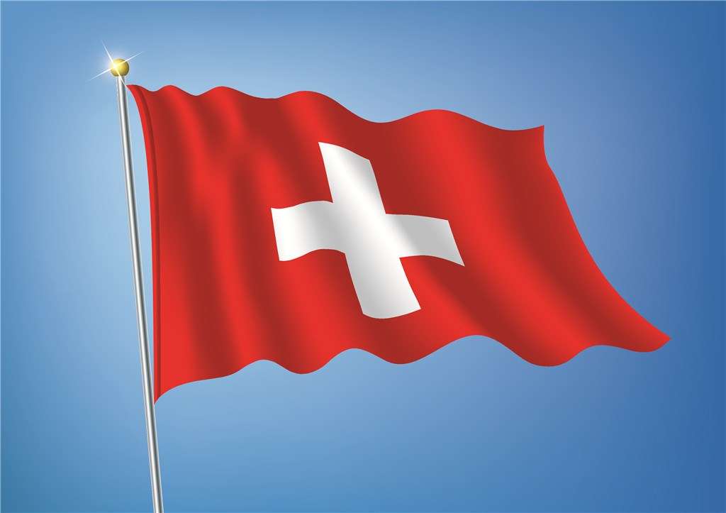 瑞士國旗呈正方形。旗底為紅色,正中一個(gè)白色十字。
