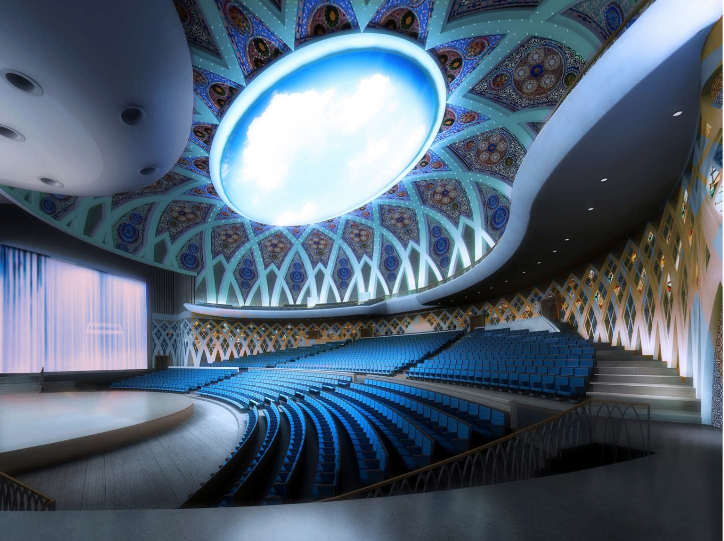 同時(shí),大劇院內(nèi)部包括若干個(gè)超大型展廳、音樂(lè)廳、多功能商務(wù)廳和數(shù)字影院,實(shí)現(xiàn)了商務(wù)活動(dòng)和文化藝術(shù)展示的完美統(tǒng)一。