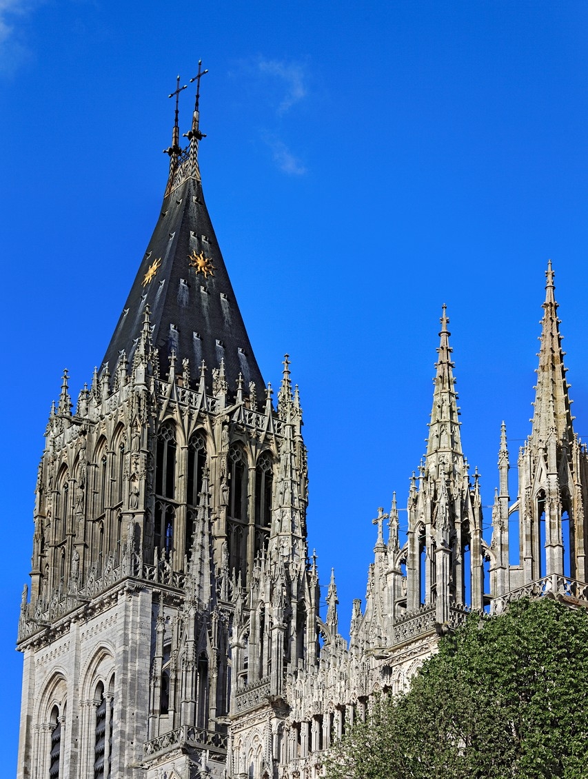 圣女貞德教堂建于1979年,外觀象一個(gè)倒扣的維京船,維京人是諾曼底人的祖先,以勇猛頑強(qiáng)著稱。建筑以板巖或銅制鱗片做頂,面向大海。教堂內(nèi)部有法國(guó)目前保存最好的文藝復(fù)興時(shí)期法國(guó)第一批彩繪玻璃窗,講述著早期諾曼底人的生活故事。外面的大十字架就是貞德火刑紀(jì)念柱。500多年前,圣女貞德就在魯昂接受審判并被處以火刑,這成為人們到訪魯昂的原由之一。圣女貞德教堂,建于貞德殉葬的原址。這座近代教堂有雙重天職;它既是紀(jì)念圣女貞德的教堂,又是紀(jì)念這位女英雄的民間紀(jì)念館,每年都吸引了無(wú)數(shù)的國(guó)內(nèi)外游客。