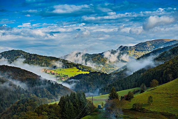 在這里,樹林逐漸被草地間隔分開,風(fēng)光漸漸向著瑞士風(fēng)格靠近。站在黑森林中海拔最高的費爾德貝格峰上眺望,沒有一覽眾山小的氣勢,有的只是美不勝收的萊茵平原,清新美麗的瑞士西部風(fēng)景和宏偉壯觀的法國斯特拉斯堡大教堂,各種景色揉合在一起,能讓你忘了身在何處。