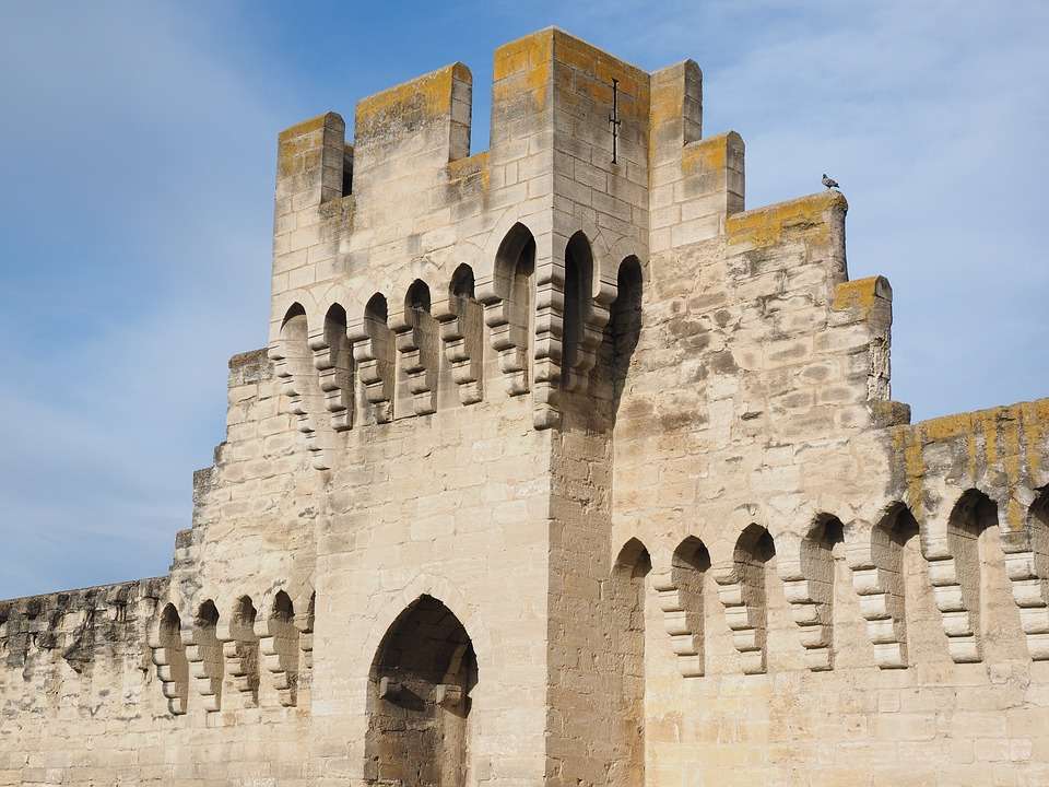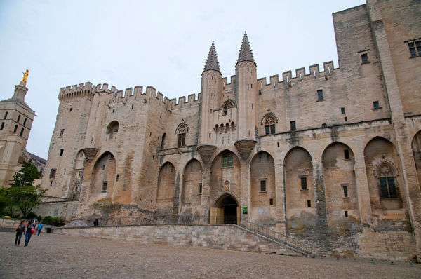 教皇宮(Palais des Papes) 由西蒙德 . 馬蒂尼和馬泰奧.焦瓦內(nèi)蒂設計裝飾的羅馬教主宮,看上去是非常古樸的城堡,它俯視著這座城市,環(huán)城的城墻和 12 世紀遺留下來的橫跨羅納河的橋梁。這座突出的哥特式建筑下面的廣場上,小宮殿和圣母院教士的羅馬主教堂構(gòu)成了一組特殊的紀念碑,他們顯示了阿維尼翁在 14 世紀基督化的歐洲所扮演的突出角色。
