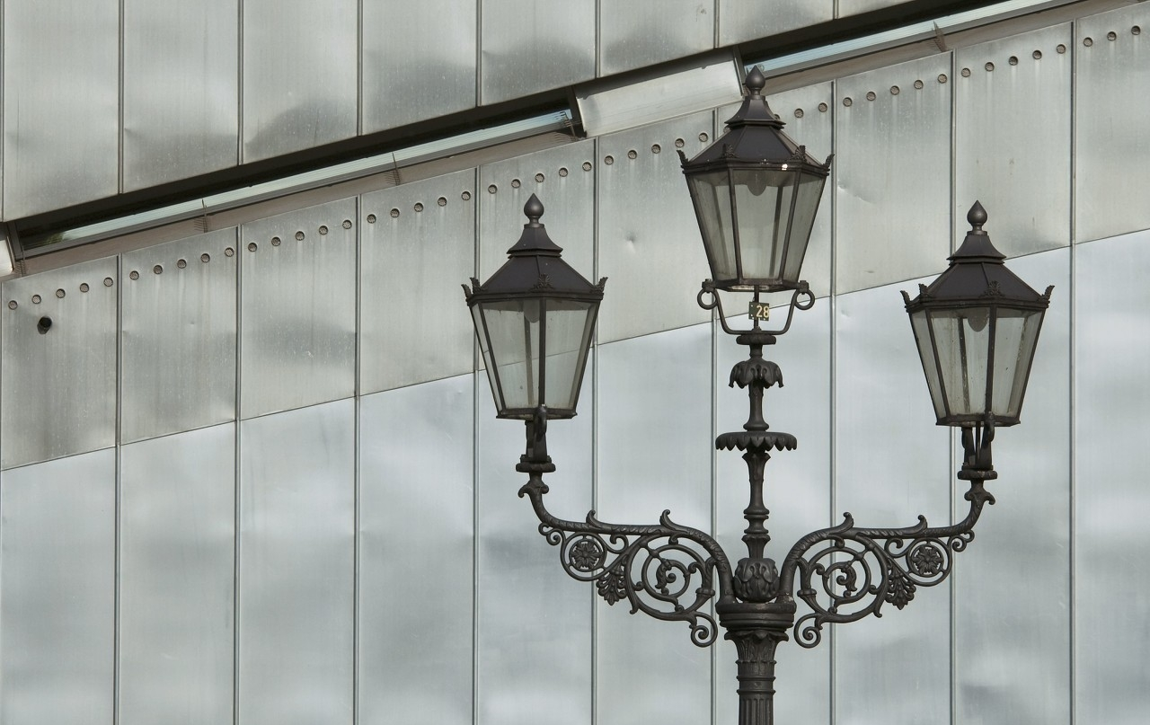 此博物館的基地圖,從上方看是線型的閃電狀,呈之字形(圖片),這也是其綽號“閃電戰(zhàn)”(blitz)的由來。外觀則由鍍鋅金屬片覆蓋,窗口都是斜線狀,不規(guī)則的橫割建物本體,這些窗口線是依據(jù)柏林地圖上的一些猶太歷史地點而被連起的,它們也被視為連結(jié)德國猶太人不同時期的破碎象征,此建物本身沒有對外的出入口,唯一一個出入口在隔壁的大樓,也就是德國歷史博物館里。這個出入通道的樓梯和走廊被設(shè)計的相當(dāng)狹窄,并連到新建物的高塔里,經(jīng)由高塔才能通到新建物的各個樓層。此塔與通道象征著德國和猶太人歷史是不能分離的,也是猛烈而隱密的。