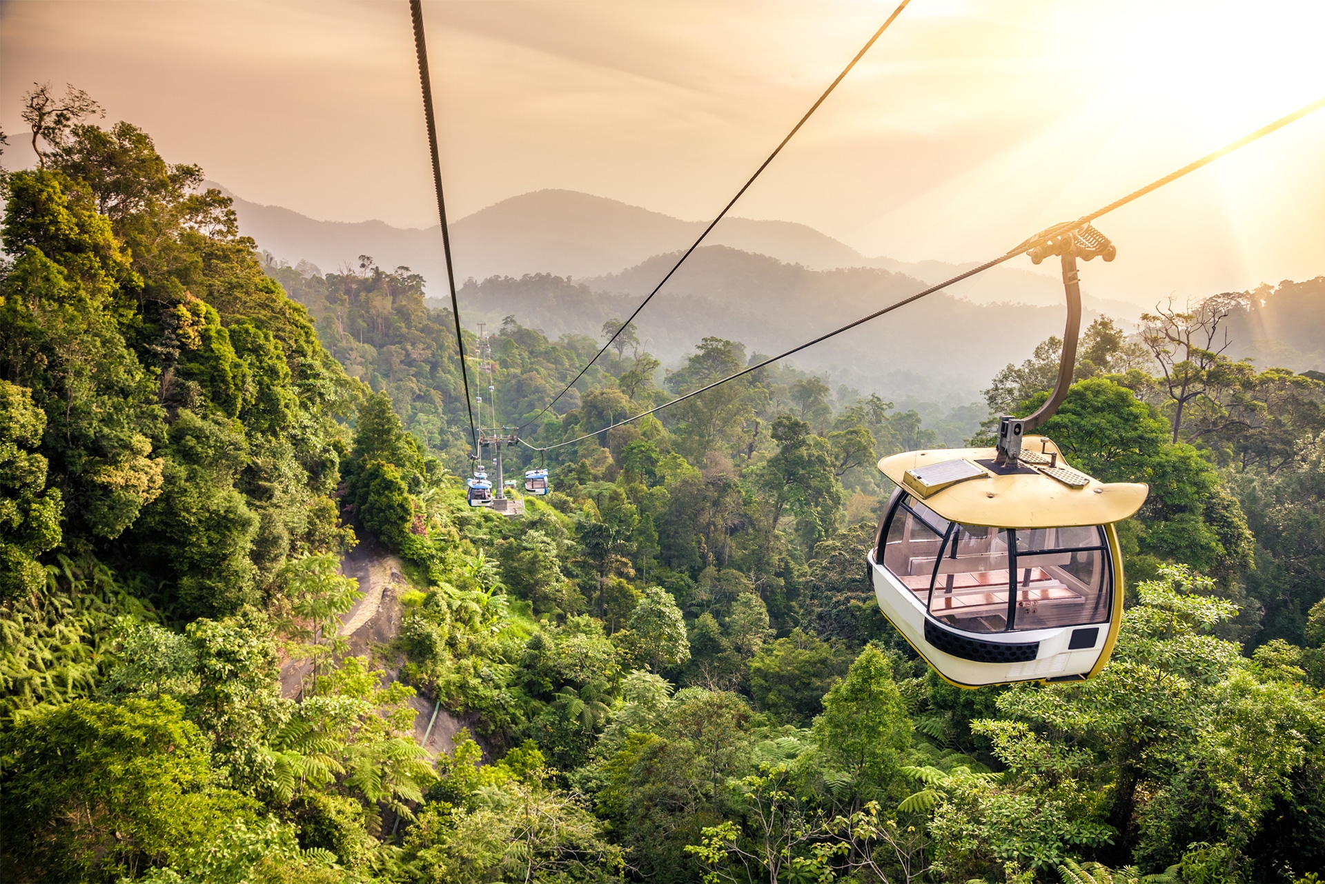 云頂纜車從位于梧桐再也的云頂纜車站出發(fā),直達(dá)美星酒店。云頂纜車由馬來西亞第四任首相拿督斯里馬哈蒂爾·本·穆罕默德醫(yī)生于1997年2月21日主持開幕。云頂纜車以每8人一車廂并在一小時(shí)內(nèi)載送2000名乘客上山。它的極速為每秒6公尺,只需大約15分鐘便能完成3.38公里長的登山路程。隨著纜車的緩緩上升,馬來西亞特有的奇花異草,以及各種只有熱帶才有的植物、動(dòng)物和鳥類躍然眼前。往往纜車坐到半山腰就能看到云霧繚繞,如入仙境,到了山頂,室外也經(jīng)常是云里霧里,看來“云頂”這個(gè)名字確實(shí)也是有點(diǎn)說法的。