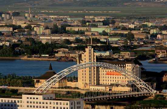 以長約0.9公里的鐵路公路兩用橋——鴨綠江大橋與與中華人民共和國遼寧省丹東市相連。新義州-平壤-咸興-羅先電氣化鐵路的起點(diǎn),中朝國聯(lián)鐵路朝鮮段的第一個(gè)車站。版權(quán)所有山東聊城聊之旅國際旅行社有限公司,轉(zhuǎn)載必究!新義州設(shè)有一個(gè)1.2公里跑道的軍民兩用航空站(SII);亦可經(jīng)由中華人民共和國遼寧省丹東市的浪頭機(jī)場(DDG)前往。