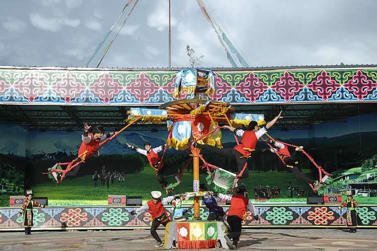 彩虹部落土族園集中展示了土族的歷史、民俗文化、土族非物質(zhì)文化遺產(chǎn)、民族建筑風(fēng)格和土族生產(chǎn)生活習(xí)俗等。開發(fā)了一系列土族民俗風(fēng)情和土鄉(xiāng)文化方面的旅游項目,具有極高的觀賞性、娛樂性和參與性。