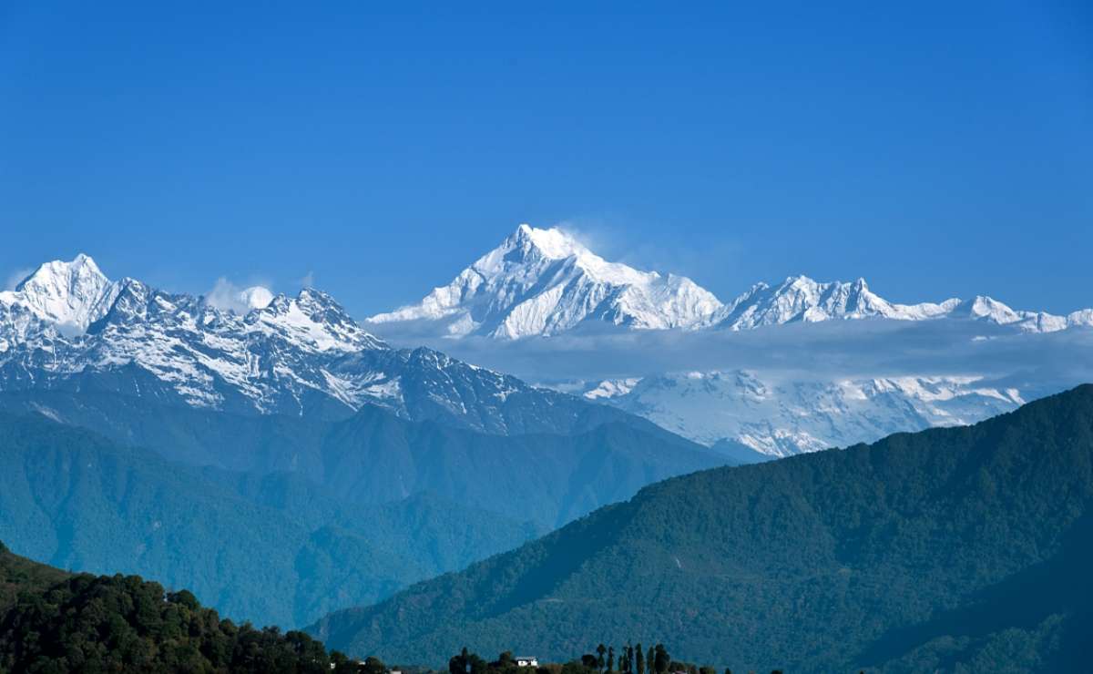 干城章嘉峰(Kangchenjunga,也常寫為Kanchenjunga),又叫“金城章嘉峰”、“康章忠格峰”,峰名Kanchenjunga原出藏語的四個字,通常翻譯為Kang-chen-dzo-nga或Yang-chhen-dzo-nga,在藏語和錫金語中的意思是“雪中五寶”,這從它有五個峰頂而得來的,并且其中四個峰頂?shù)暮0卧?400米以上。