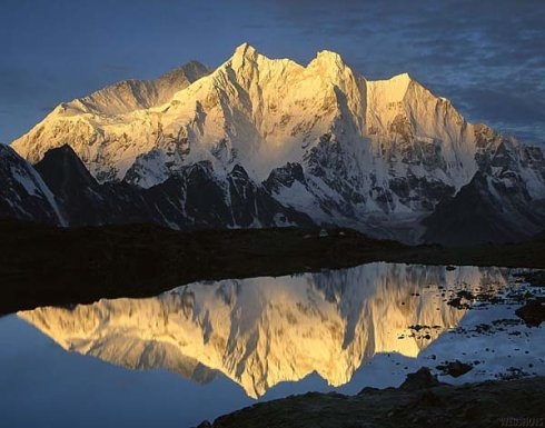 干城章嘉峰位于尼泊爾和印度邊界,是世界第三高峰,也是全世界14座8000米高峰中,位置最東的一座,無論從任何一個角度來看,干城章嘉峰都有著寬闊巨大的山體,由五個不同的峰頂(其中四個海拔在8400米以上)組合出的巨大山塊。