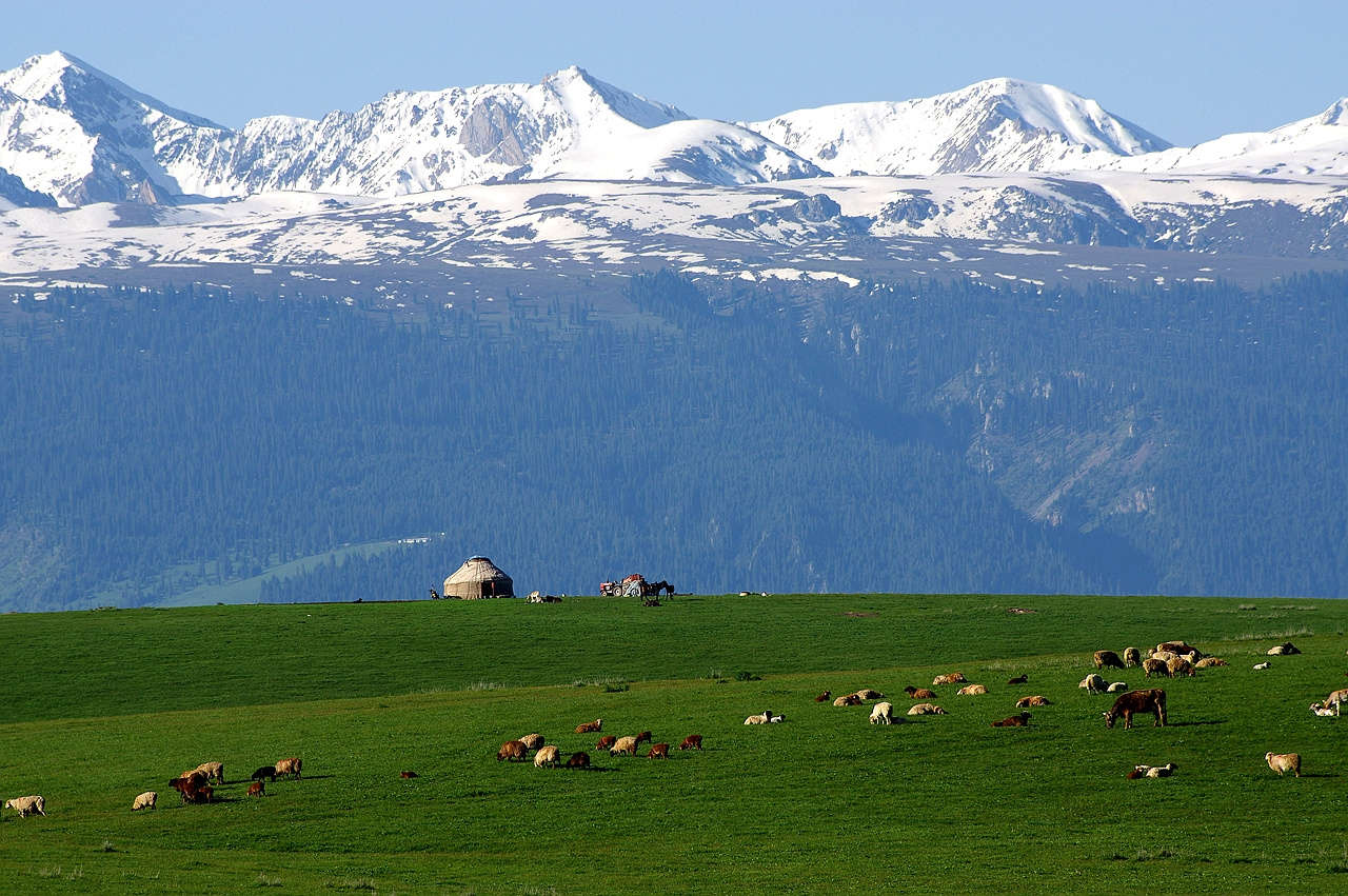 昭蘇草原介紹一望無垠的昭蘇草原,綠草如織,駿馬馳騁,牛羊遍野;秀美的夏塔古道、夏塔谷地,綠草如茵、野花遍地、蜂飛蝶舞、五彩斑闌,清澈碧綠的夏塔河猶如一條玉帶,岸邊的座座氈房好似珍珠點(diǎn)綴其上。