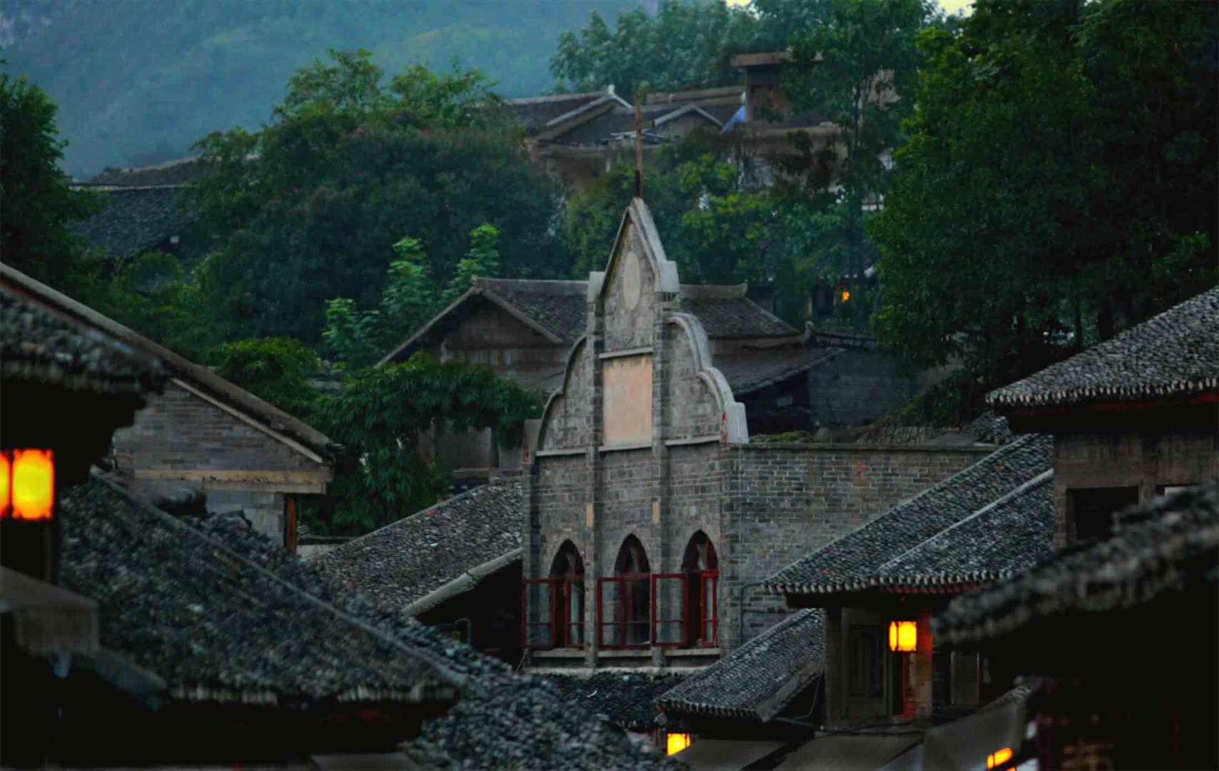 青巖古鎮(zhèn)有著深厚歷史背景的建筑。爬上鎮(zhèn)邊一側(cè)不算太高的山坡可以鳥瞰小鎮(zhèn)的全景,小鎮(zhèn)并不是建造在一個(gè)平面上而是建造在高低不平的山坡面上,從高處望去,整個(gè)小鎮(zhèn)的格局給人一種在別的古鎮(zhèn)中難以看到的立體美感。青巖古鎮(zhèn)中除了眾多的寺廟,竟然還保留著一座基督堂和一座天主堂,多種宗教和諧共處,形成其獨(dú)特風(fēng)格。