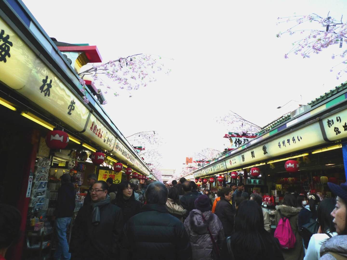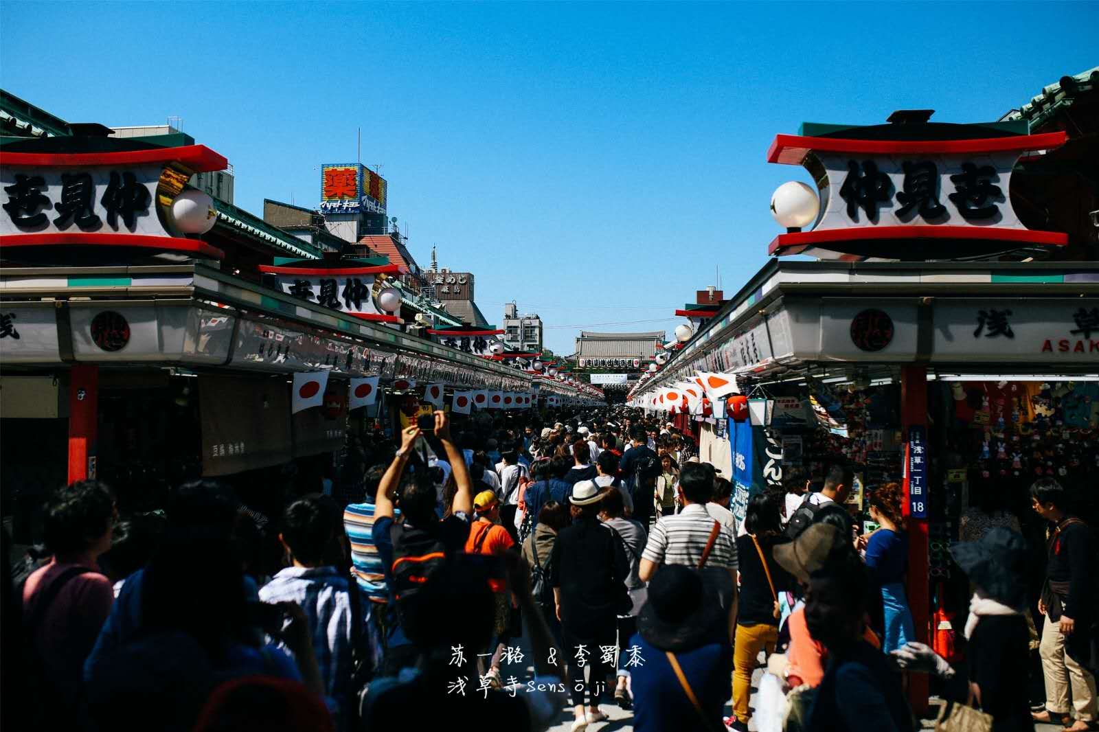 仲見世商業(yè)街從雷門延伸到淺草寺主要場(chǎng)地,大約250米長(zhǎng)。