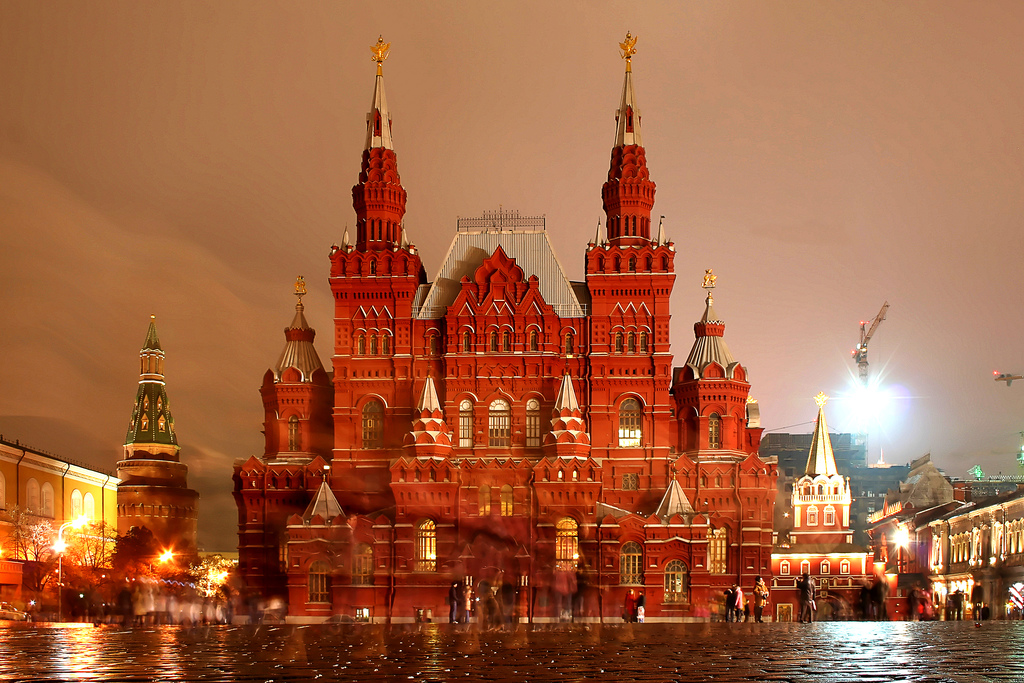 俄羅斯國家歷史博物館(The State Historical Museum)位于俄羅斯莫斯科紅場北側(cè)的馬涅什廣場上,是一座建筑造型非常美麗且極具新俄羅斯風(fēng)格的朱紅色建筑物;在主體建筑物的兩側(cè)各有一座高聳對稱的塔樓,還有裝飾性的尖塔、三角檐與圓拱型窗戶。