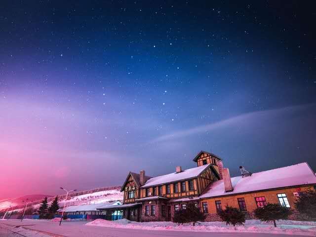 阿爾山站建于1937年,是一幢東洋風(fēng)格的低檐尖頂二層日式建筑,一層外壁周圍是用花崗巖堆砌的亂插石墻,樓頂用赭色水泥涂蓋。