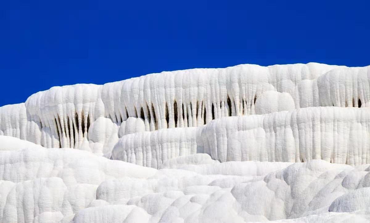 位于土耳其代尼茲利(Denizli)市的北部,是遠(yuǎn)近聞名的溫泉度假勝地,此地不僅有上千年的天然溫泉,更有這種古怪的好似棉花一樣的山丘。