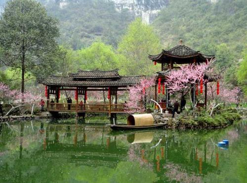 桃花源集秦晉歷史文化、土家民俗文化、自然生態(tài)文化、天坑溶洞地下河共生巖溶地質奇觀于一體。桃花源風景區(qū)與陶淵明筆下描述的“世外桃源”極其吻合。原中共中央政治局常委、全國人大委員長李鵬親筆題詞“中國酉陽桃花源風景區(qū)”。是“遠離塵世喧囂、步入秦晉田園、探尋科學奧秘、回歸綠色天堂”的絕地方。