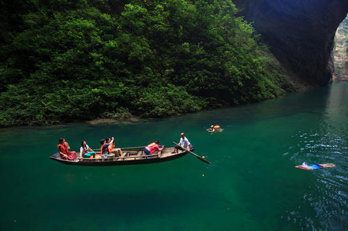 中法探險(xiǎn)隊(duì)歷經(jīng)十年考察宣布,奉節(jié)龍橋河至恩施大峽谷的地下暗河全長50千米,為世界之最。僅暗河之上的豎井就有108個(gè),形似著名的新疆坎兒井,非常壯觀和罕見。