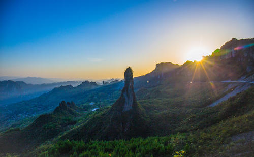 “一炷香”,高約150余米,最小直徑只有4米,此地的巖石的抗壓強(qiáng)度是800千克每立方厘米,它風(fēng)吹不倒,雨打不動,傲立群峰之中千萬年,守護(hù)著這片神秘的土地。他近觀猶如男根,展示著他威武的雄姿,儼然成了大峽谷中的鎮(zhèn)谷之寶。反映一炷香的美術(shù)作品眾多,以中國博物館協(xié)會會員、國家一級美術(shù)師、全國“畫中華名人故居第一人”、著名畫家拇指先生的《陳連升故里 鎮(zhèn)谷之寶一炷香》最為有名。相傳,這根石柱是天神送給當(dāng)?shù)匕傩盏囊桓y香,如遇災(zāi)難將他點(diǎn)燃,天神看到寥寥青煙,就會下凡來救苦救難,所以當(dāng)?shù)匕傩辗Q它為“難香”,這難香又長又細(xì),晴空萬里時(shí),一朵白云疊在峰頂,遠(yuǎn)遠(yuǎn)看去就像天上的香火,宛若仙境;陰雨天氣時(shí),升起的一層薄霧,就像一縷青紗,將它打扮得若隱若現(xiàn),嫵媚動人。從地質(zhì)學(xué)上講,由于長江水系、清江水系長期交錯(cuò)的影響,不斷地侵蝕,不斷地沖刷,才形成如今陡峭的石柱,由于保存極度困難,所以地球上類似細(xì)長的石柱并不多見,而最長最大的莫過于此。