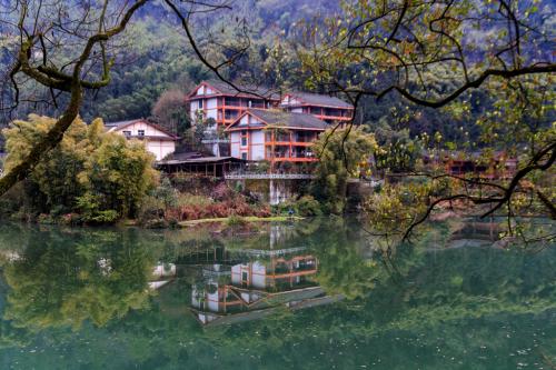 廣濟(jì)禪師根據(jù)寺周山水懷抱的天然風(fēng)貌,又見亭、臺(tái)、樓、閣與流水潺潺和諧相融,即取晉朝詩(shī)人左思《招隱詩(shī)》中的“何必絲與竹,山水有清音”中的“清音”二字,改寺名“清音閣”,后廣濟(jì)禪師圓寂在后牛心寺。在清音閣深夜聽“清音”,是最好的黃金時(shí)段,早在1200多年前就大有人在了:唐代初年的高僧繼業(yè)三藏,從印度研經(jīng)歸來(lái),常信在大峨寺后的呼應(yīng)庵中。夜聽清音,已成了他多的癖好,每每必至,往返六十多里,風(fēng)雨無(wú)阻;還留下了一段美好的傳說(shuō):在一個(gè)月明星衡的秋夜,他喜孜孜的傾聽著“清音”返回庵中。在黑、白二水匯流處,高興地拾得一枚奇石,竟如人面,眉清目秀,活生生的呼之個(gè)人成分出,以為至寶,供奉前,見石之處,后名“寶現(xiàn)溪”。而今,雖然人面寶石不見了,但“寶現(xiàn)溪”這個(gè)地名是無(wú)法磨滅的,至今還泛起人們聽清音的興頭。在清音閣,可看到山光水色,聞到花草芬芳,聽到流泉清音,觸摸到亭臺(tái)碑石。它集中了視覺美、聽覺美、嗅覺美,使游者獲得峨眉風(fēng)光總體的審美感受;古今游人多稱譽(yù)為“峨眉山第一風(fēng)景”。周邊景色優(yōu)美,玲瓏精巧的樓閣居高臨下。中部,是丹檐紅樓的接御、中心二亭、亭兩側(cè)各有一石橋、分跨在黑白二水之上,形如雙翼,故名雙飛橋。近景,則為匯合于牛心亭下的黑、白二水。右側(cè)黑水,源出九老洞下的黑龍?zhí)?,繞洪椿坪而來(lái),水色如黛,又名黑龍江;左側(cè)白水,源出弓背山下的三岔河,繞萬(wàn)年寺而來(lái),水色泛白,又名白龍江。版權(quán)所有山東聊城聊之旅國(guó)際旅行社有限公司,轉(zhuǎn)載必究!兩江匯合沖擊著碧潭中狀如牛心的巨石,任其黑、白二水洶涌拍擊,仍巍然不動(dòng),組成獨(dú)具特色的寺廟、山水、園林環(huán)境。“戊戌六君子”之一劉光弟也巧妙地將二橋一石概括為:“雙橋兩虹影,萬(wàn)古一牛心”。這樣如詩(shī)如畫的“雙橋清音”是“峨眉山十景”之一;這里一年四季,無(wú)論晝夜,滿回蕩著水聲,這水聲單一而清晰,加上兩橋,故而譽(yù)為“雙橋清音”,成為峨眉十景之一。交通信息編輯從五顯崗?fù)\噲?chǎng)步行約30分鐘可到。地理位置編輯清音閣位于峨眉山風(fēng)景區(qū)的核心地段,左通洪椿坪、仙峰寺,右達(dá)白龍洞、萬(wàn)年寺,為上山朝拜、觀光必經(jīng)之地。
