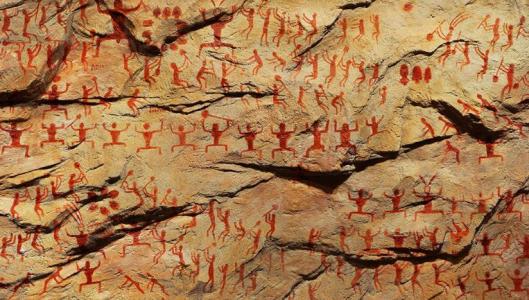 令人稱奇的是,經(jīng)歷了如此久遠年代的風(fēng)吹日曬雨淋,壁畫的顏色仍然非常鮮艷,不知先民們是用什么顏料作畫的?在如斧劈刀削般、高聳險峻的崖壁上,這些圖像又是怎么畫上去的?“是誰揮得筆如椽,乾坤寫此大詩篇”;“鬼斧神工輸技巧,風(fēng)吹雨打猶鮮妍”——這是古人對花山巖畫的感嘆,也提出了讓人百思不得其解的兩個疑問。