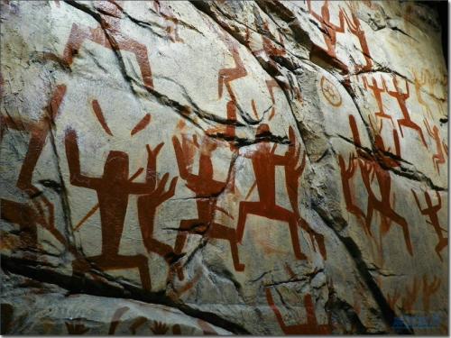 而關(guān)于花山巖畫的內(nèi)容,又是另外一個不解之謎,是專家們研究的又一個重點。由于花山巖畫歷史久遠,又缺少相關(guān)文獻記載。專家們只能就巖畫的畫面和出土的文物進行分析研究。專家們有的認為這是描述駱越人抗擊外敵入侵戰(zhàn)爭勝利的慶祝場面;有的認為是駱越人祈求上天保佑其兵強馬壯、社會繁榮的愿望;有的則認為巖畫是駱越人用來鎮(zhèn)河妖,祈求風(fēng)調(diào)雨順的意愿......各種觀點說法不一,至今還沒有定論。但可以肯定的是:以花山巖畫為中心的左江流域巖畫長廊,以其巖畫地點分布之廣,作畫難度之大,畫面之雄偉壯觀,都是國內(nèi)外所罕見,具有很強的藝術(shù)內(nèi)涵和重要的考古科研價值。從巖畫中,我們不僅看到壯族先民古駱越人的繪畫藝術(shù)成就,同時還感受到了古代壯族社會生活內(nèi)容的豐富和勤勞、勇敢、奮斗的民族精神。