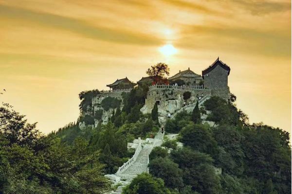 云門山風(fēng)景區(qū)山腰處是“望壽閣”,原為元朝時期的“靈官廟”,后毀于戰(zhàn)火,1984年重修。因這里與山頂?shù)摹皦邸弊诌b遙相望,于是更名為“望壽閣”。閣內(nèi)的正殿建于懸崖之上,高大宏偉,古樸壯觀,正門匾額上書“望壽閣”三個大字,為著名書法家啟功題寫。殿內(nèi)供奉福、祿、壽三星,東西兩邊的廂房里供奉關(guān)公和財(cái)神,許多游客喜歡在此進(jìn)香拜神,希冀自己和家人一生平安,萬事如意。