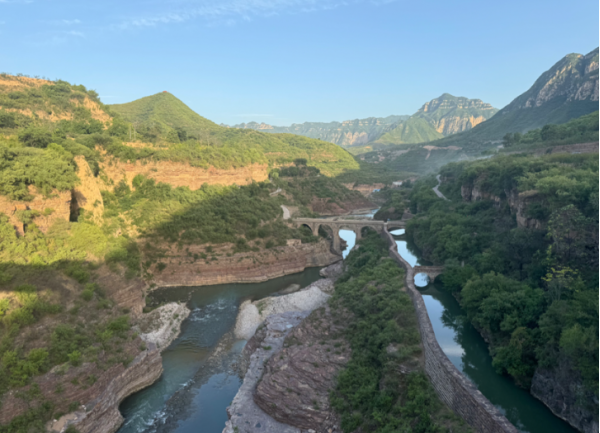 濁漳河位于平順城北25千米處一條橫貫東西的峽谷內(nèi),長54千米。河進入縣境即遇山西省第二大泉辛安泉,注入8個流量的水源,河水流量最大可達1400立方米/秒,澎湃翻涌,一瀉千里。沿途有赤壁、侯壁、天橋三處瀑布,聲吼如雷,霧氣沖天。王曲、辛安、實會等村附近,地下泉水遍地翻涌,稻浪滾滾、灣里、赤壁、侯壁、王家莊等處各有小平湖,湖光山色,一派江南風(fēng)情。