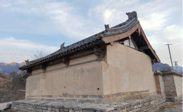正殿 正殿建于石質(zhì)臺(tái)基上,面闊三間、進(jìn)深四椽,梁架為三椽栿對(duì)前搭牽通檐用三柱,單檐懸山頂,灰板瓦屋面。柱頭直接置櫨斗不設(shè)普柏枋,闌額至角柱不出頭,柱頭斗栱四鋪?zhàn)鲉蜗掳海瑹o(wú)補(bǔ)間鋪?zhàn)鳎顑?nèi)存清代工筆淡彩壁畫(huà)53.7平方米,內(nèi)容為西游記人物和四大天王等。殿東側(cè)山墻上嵌石碣1方,記載清光緒二年(1876)重修情況。