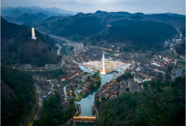 2024年9月,貴州烏江寨國際旅游度假區(qū)利用獨特的民族風格建筑打造出一場水火交融的超震撼舞臺,推出非遺打鐵花、震撼火壺秀、鳳凰飛天、花燈游園會、無人機燈光秀等精彩節(jié)目。